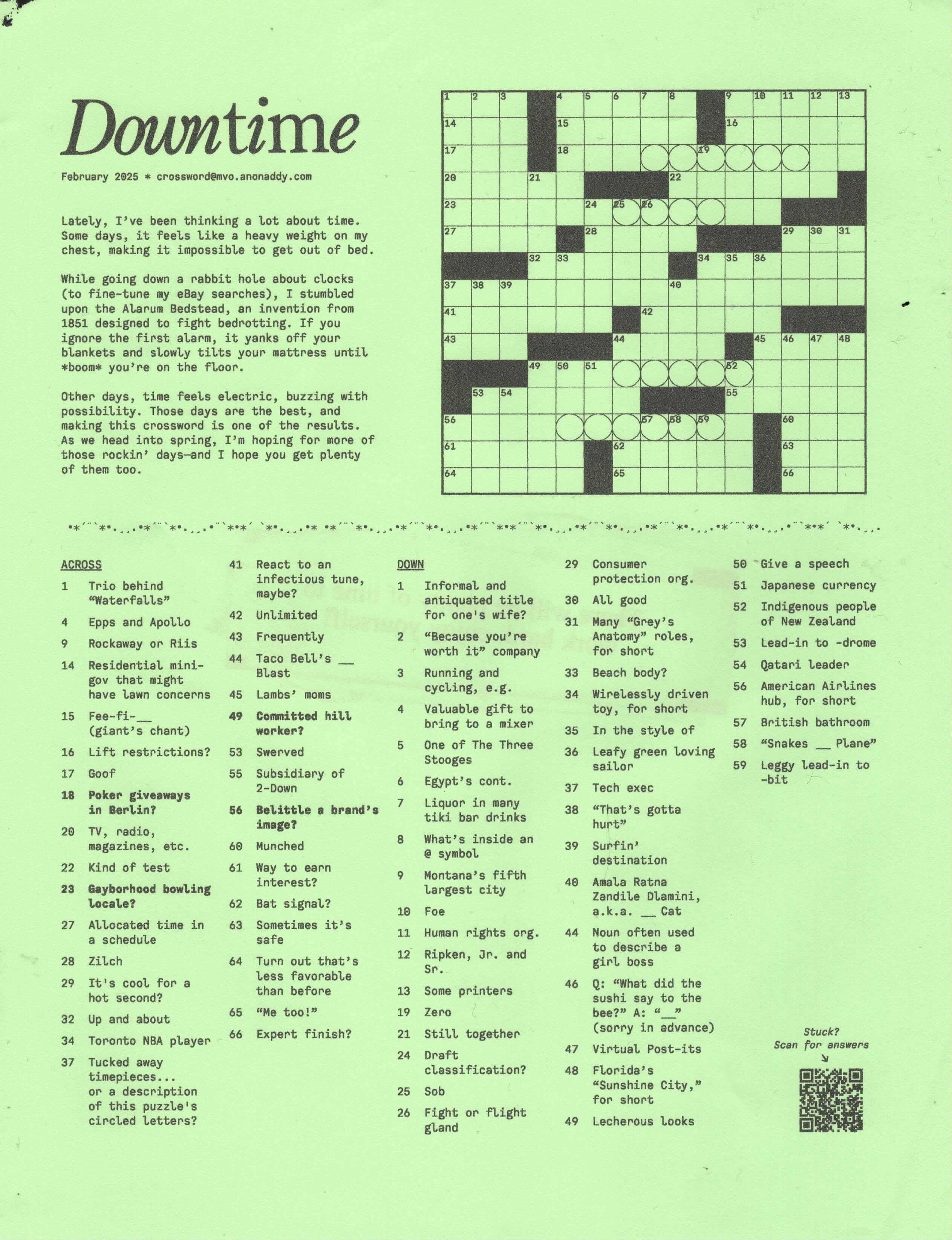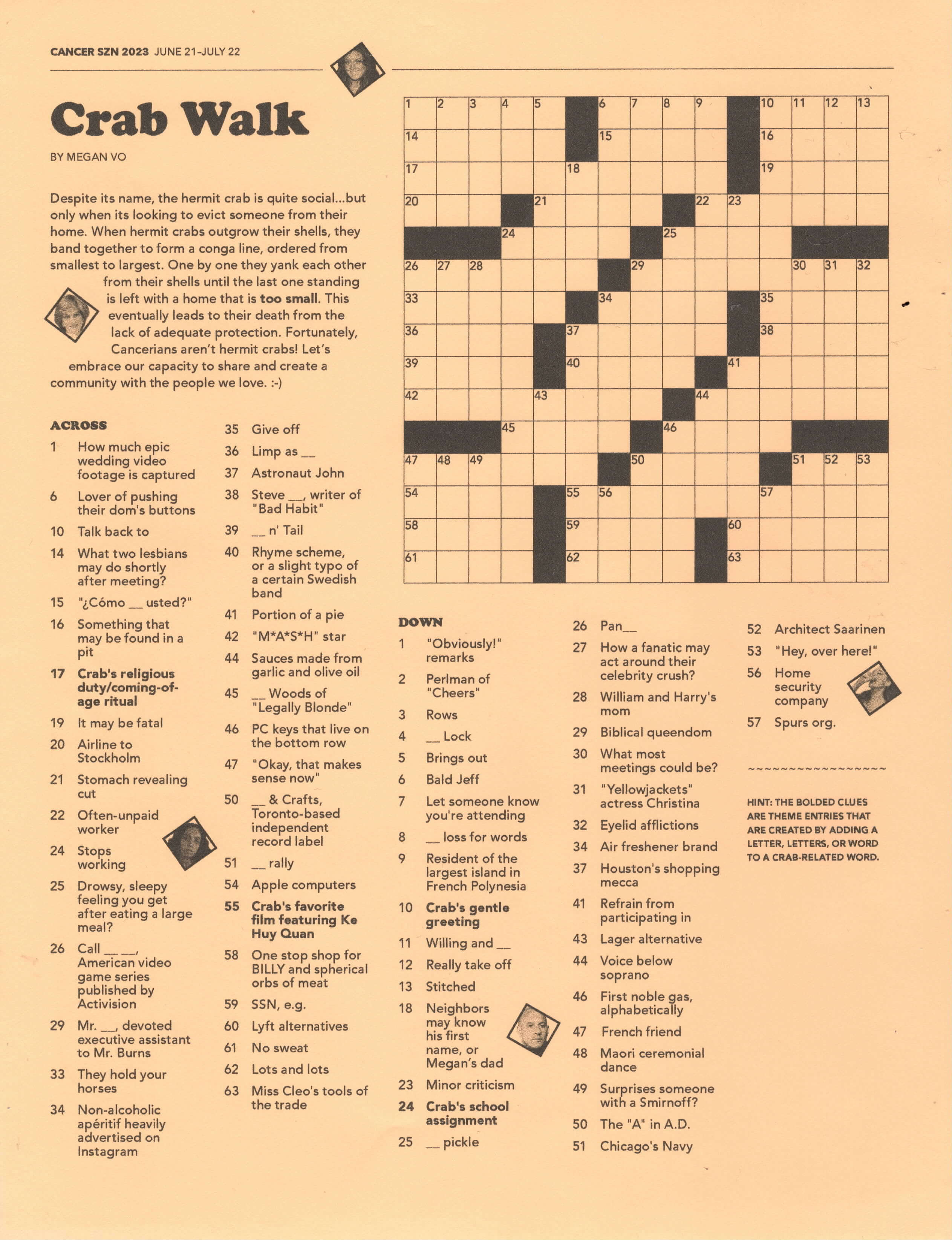 Reach out at meganmvo@gmail.com if you'd like to learn more about my product design work. For now, here's my middle school Deviantart and some crosswords I enjoyed making.